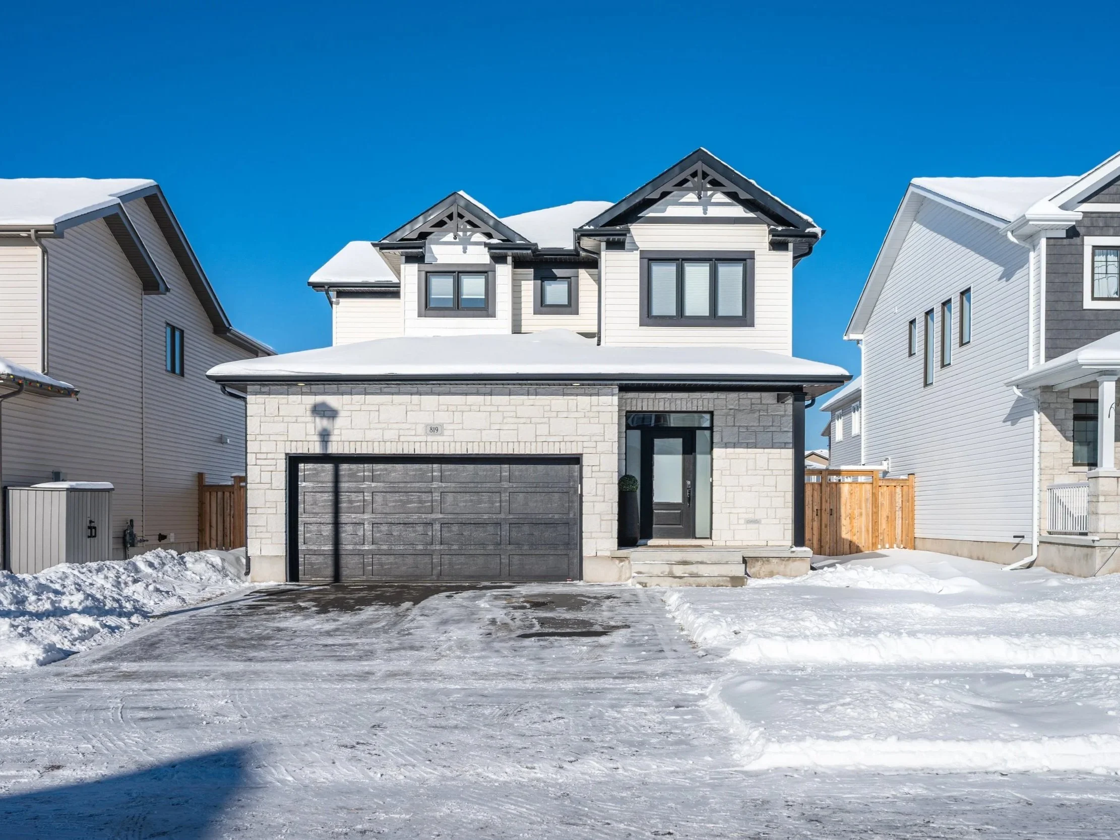 Originally CaraCo's model home for the desirable TrailsEdge community, this upgraded modified "Markham" model offers approximately 2,600 sq. ft. of finished aboveground living space with 4+1 bedrooms and 3.5 bathrooms, showcasing quality construction and high-end finishes throughout. The main floor features 9' ceilings, hardwood and tile flooring, and an impressive open-concept layout. The custom kitchen is a true centrepiece, complete with an oversized island featuring quartz countertops with waterfall edges, extended breakfast bar, extended upper cabinetry, walk-in pantry, canopy range hood, high-end KitchenAid appliances, and a bright breakfast nook with patio doors leading to a large rear deck and backyard.